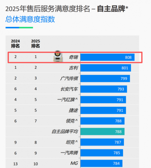 9月,权威机构J.D. Power正式发布“2025中国售后服务满意度指数CSI”联合研究结果。根据此次研究结果显示,奇瑞汽车成功登顶主流品牌榜首,并荣膺自主品牌满意度第一,证明了自身卓越的服务品质和用户口碑。